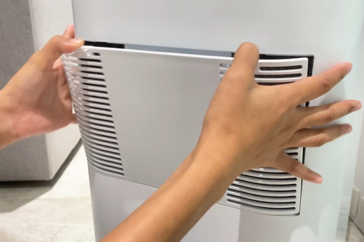 1. ถอดฝาครอบตัวกรองด้านหลังตัวเครื่องออก
